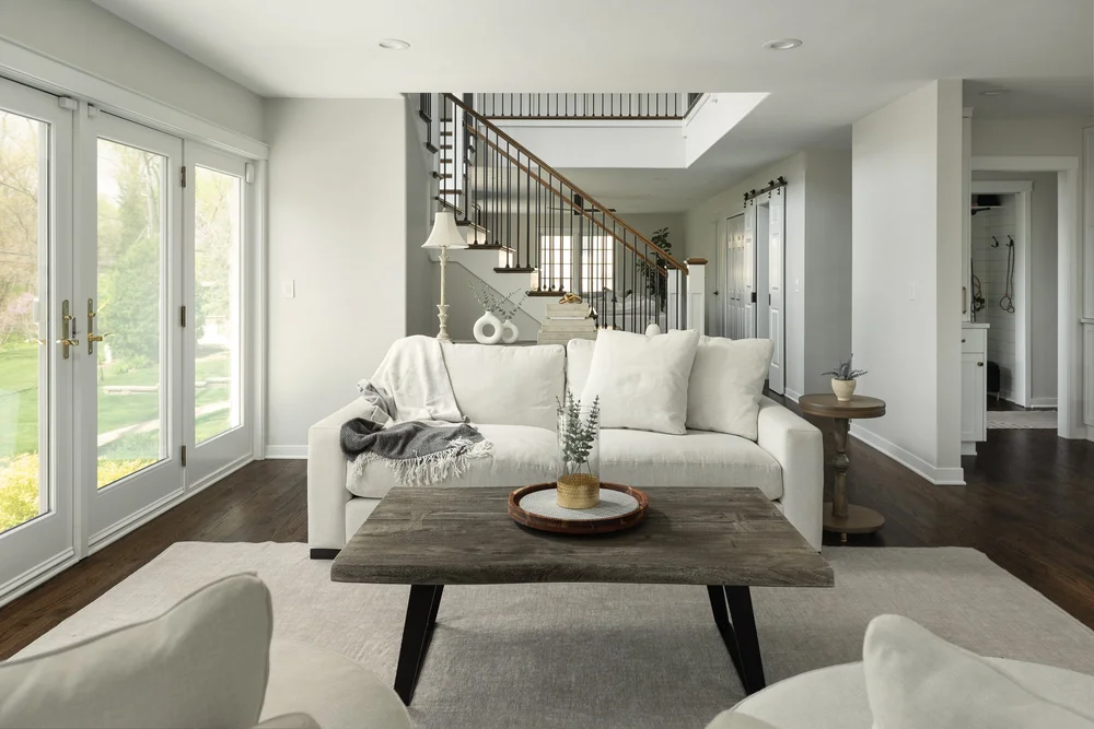 This timeless, transitional whole-home remodel blends elegance with everyday comfort. This stunning space invites you in at every turn - whether you’re cozied up by the fire, savoring a quiet breakfast in the nook, cooking in the custom chef’s kitchen, or making an entrance to the grand statement staircase that leads to an impressive upper landing.