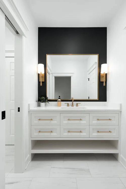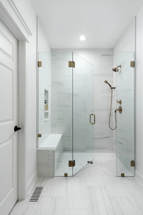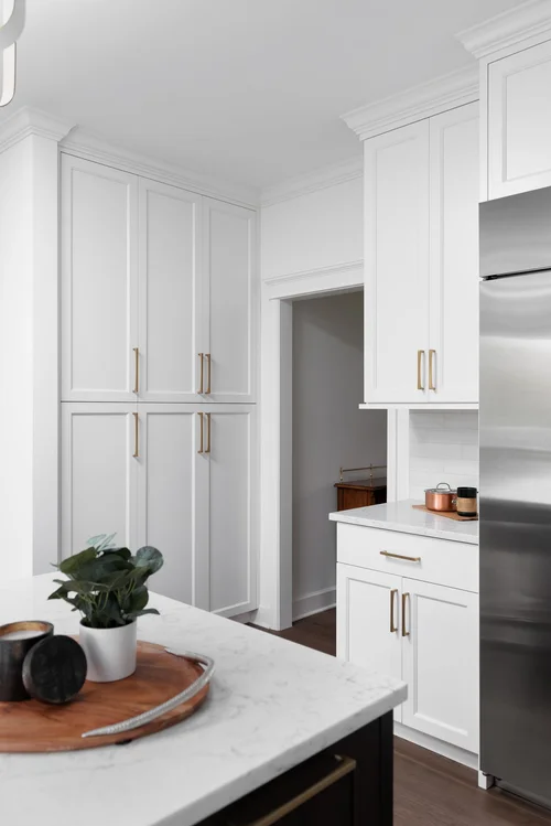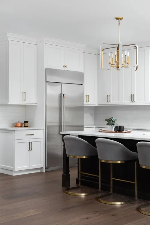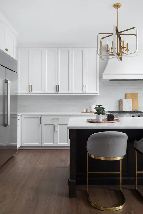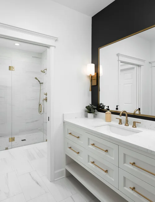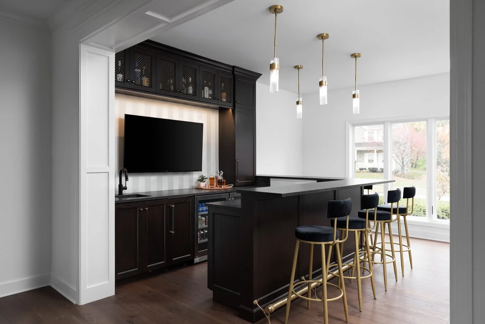 This first-floor remodel evokes modern sophistication, creating a seamless transition-style kitchen that serves as the heart of the home. Thoughtfully designed with clean lines, warm finishes, and high-end appliances, the space balances timeless elegance with contemporary function. Just beyond, a fully stocked bar invites effortless entertaining, The primary suite is a true homeowner’s retreat, offering a spacious bedroom filled with natural light and refined details. The adjoining bathroom delivers a spa-like experience, featuring luxurious finishes.